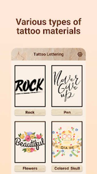 Met de mogelijkheid om foto's rechtstreeks uit de galerij te importeren of nieuwe afbeeldingen vast te leggen met de ingebouwde camera, is het ontwerpproces eenvoudig en efficiënt. Zodra het ontwerp is voltooid, kunnen gebruikers hun creaties opslaan op hun apparaat en deze gemakkelijk delen op sociale media. Tattoo Lettering biedt een complete ervaring voor iedereen die op zoek is naar een persoonlijke tattoo-ontwerp tool.